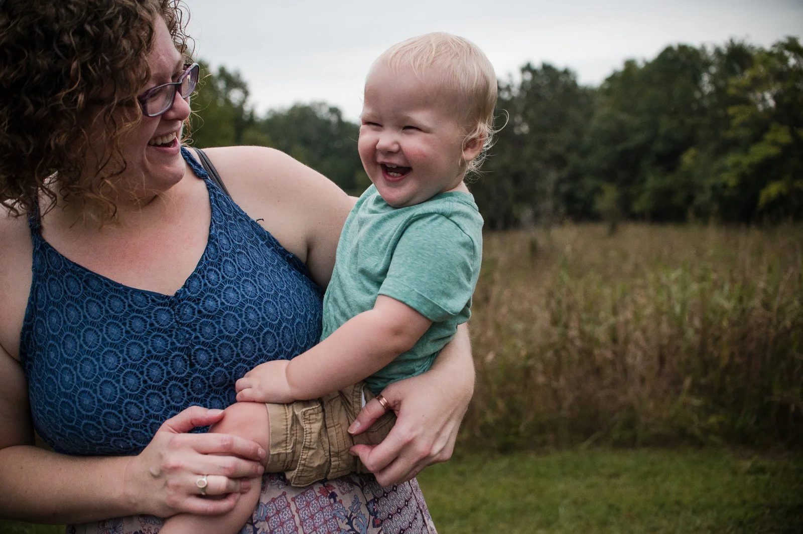 Mother & toddler son playing and laughing during family pictures in Charlottesville, VA by Erin E Gallagher Photography